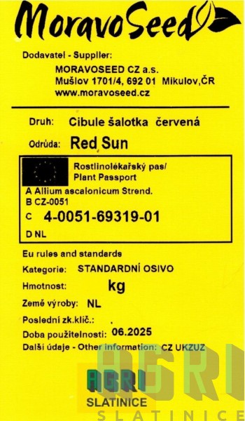 RED SUN -  Sazečku je nutné skladovat na suchém chladném místě. Před výsadbou se doporučuje sazečku cibule namořit proti houbovým chorobám. Půda by měla být propustná, dobře zpracovaná s dostatečnou dávkou živin. Cibule však nesnáší přímé hnojení chlévským hnojem. Sázíme do řádků 25 - 30 cm vzdálených, v řádcích na vzdálenost 10 cm a do hloubky cca 3 cm. Cibule obsahuje éterické oleje, je bohatá na sacharidy, vápník, železo a fosfor. Působí antiastmaticky, antibakteriálně, antisepticky. Snižuje krevní tlak a hladinu cholesterolu.
